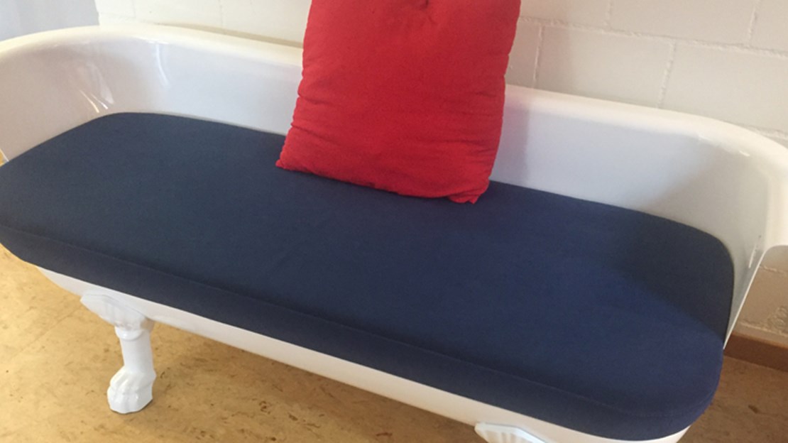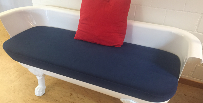 Planen Sie für eine Ausstellung zum Thema Wasser/Trinkwasser eine gemütliche Lounge, dann überraschen Sie die Besucherinnen und Besucher mit einem modernen Badewannensofa!