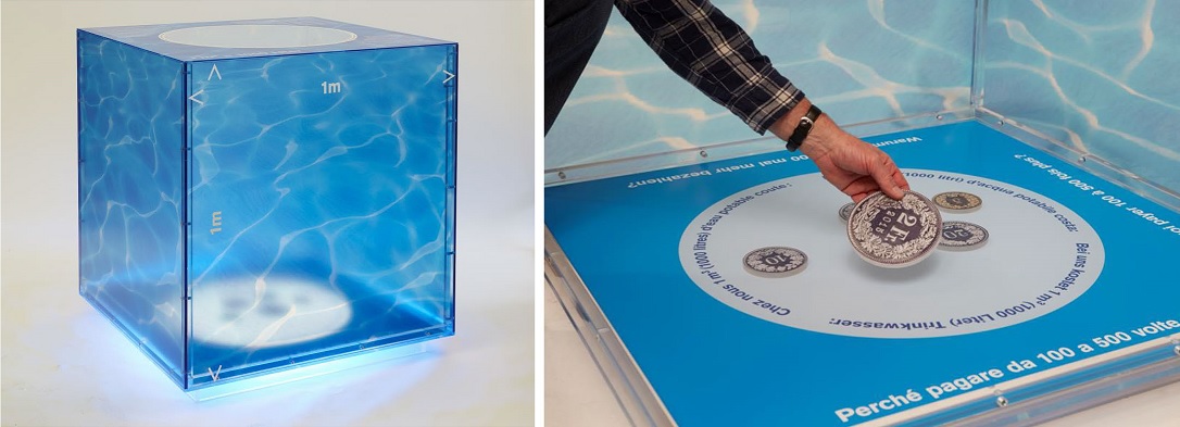 Idee: Das Volumen des Würfels entspricht dem persönlichen Wasserverbrauch pro Jahr (Deutsch, Französisch, Italienisch)