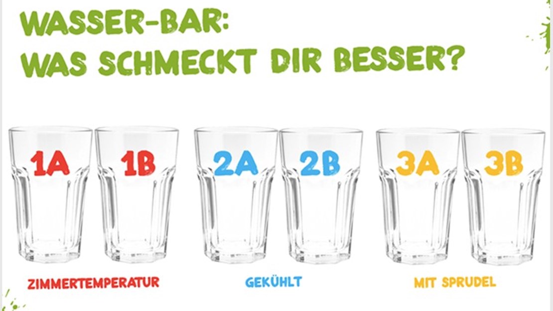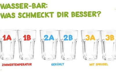 Eine Degustationsrunde sensibilisiert die Schülerinnen und Schüler als erstes fürs Thema Wasser. Anhand von Filmen und einer Präsentation sollen auch Massnahmen diskutiert werden, wie die Wasserqualität in der Schweiz weiterhin garantiert werden kann.