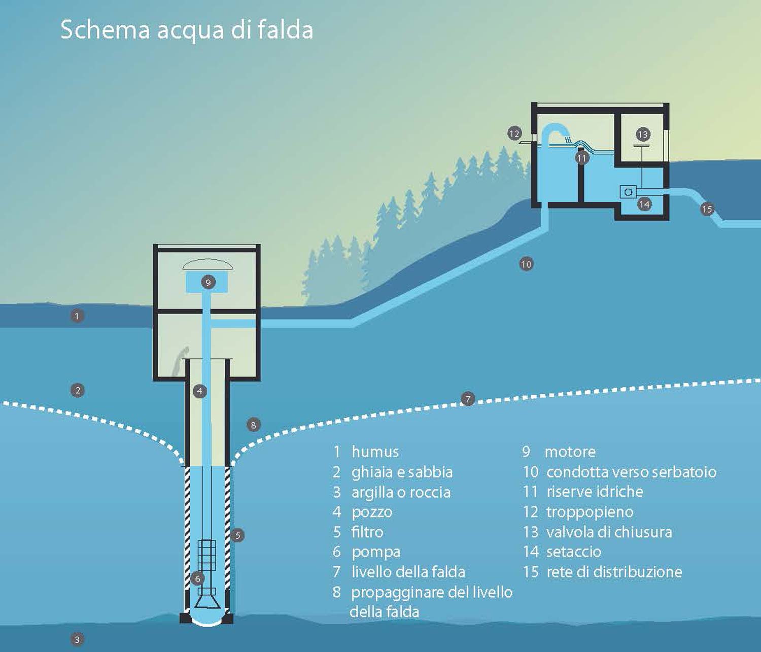 Le risorse idriche sotterranee si rinnovano costantemente grazie alla penetrazione nel terreno delle acque meteoriche e di lago che, per effetto della forza di gravità, penetrano nel suolo fino a raggiungere uno strato impermeabile che ne impedisce il passaggio. L'attraversamento della ghiaia costituisce un naturale processo di filtrazione che garantisce all'acqua una buona qualità.