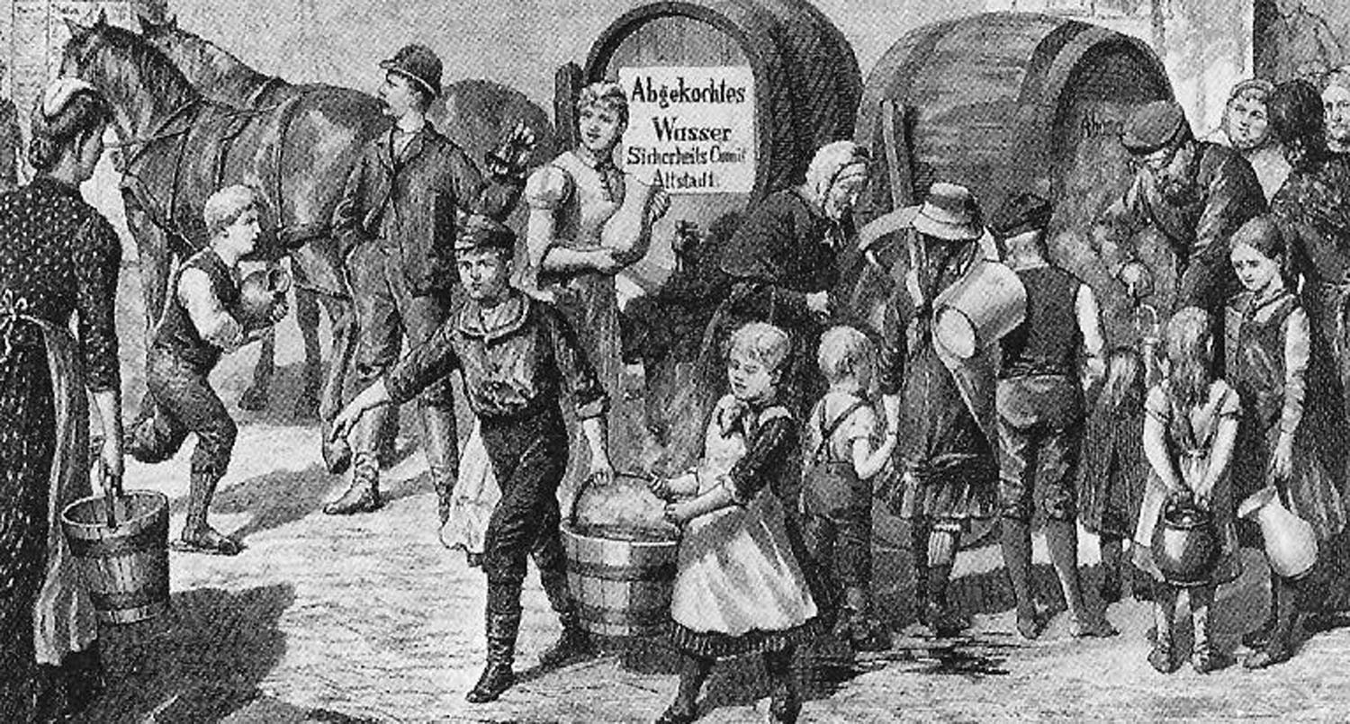 Prima della scoperta degli agenti patogeni del colera (1883) e del tifo (1906), l'acqua potabile non era vista come un potenziale veicolo di infezioni: in linea di principio, era considerata sostanzialmente innocua. Così, attraverso le ampie reti idriche esistenti nelle città, germi e batteri si diffondevano a macchia d'olio e provocavano epidemie. Quando ci si rese conto del ruolo dell'acqua potabile nella propagazione delle malattie, si iniziò a bollirla. Solo a partire dalla metà del XX secolo prese slancio lo sviluppo di nuovi procedimenti di depurazione.