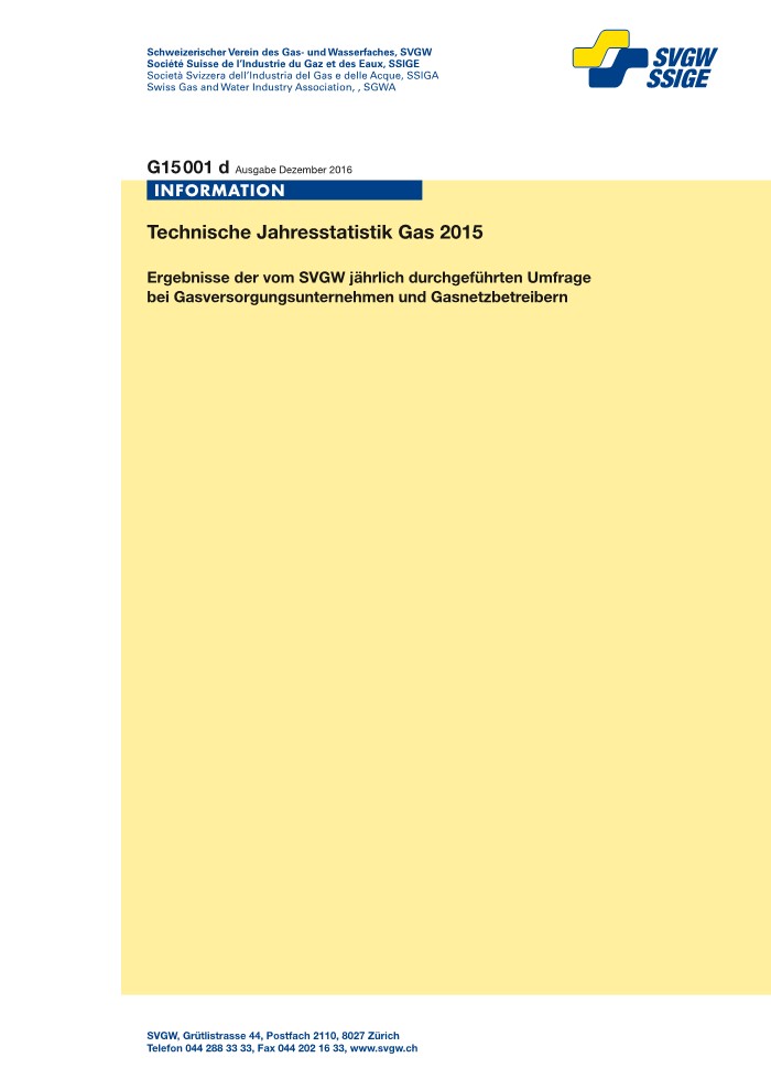 G15001 d Fachinformation; Technische Jahresstatistik Gas 2015