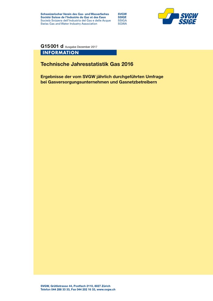 Ergebnisse der vom SVGW jährlich durchgeführten Umfrage bei Gasversorgungsunternehmen und Gasnetzbetreibern (Ausgabe 2018)