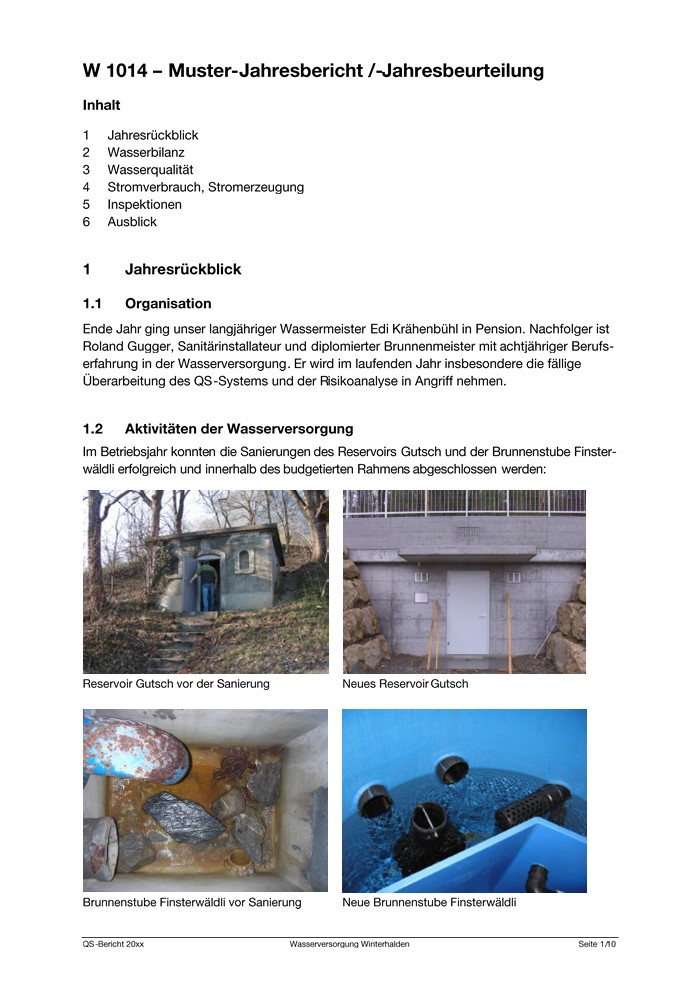 Jahresrückblick/Wasserbilanz/Wasserqualität/Stromverbrauch, Stromerzeugung/Inspektionen/Ausblick